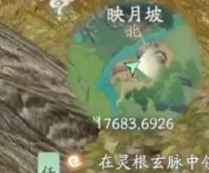 1、进入游戏后打开地图,前往映月坡(7686.6926)处