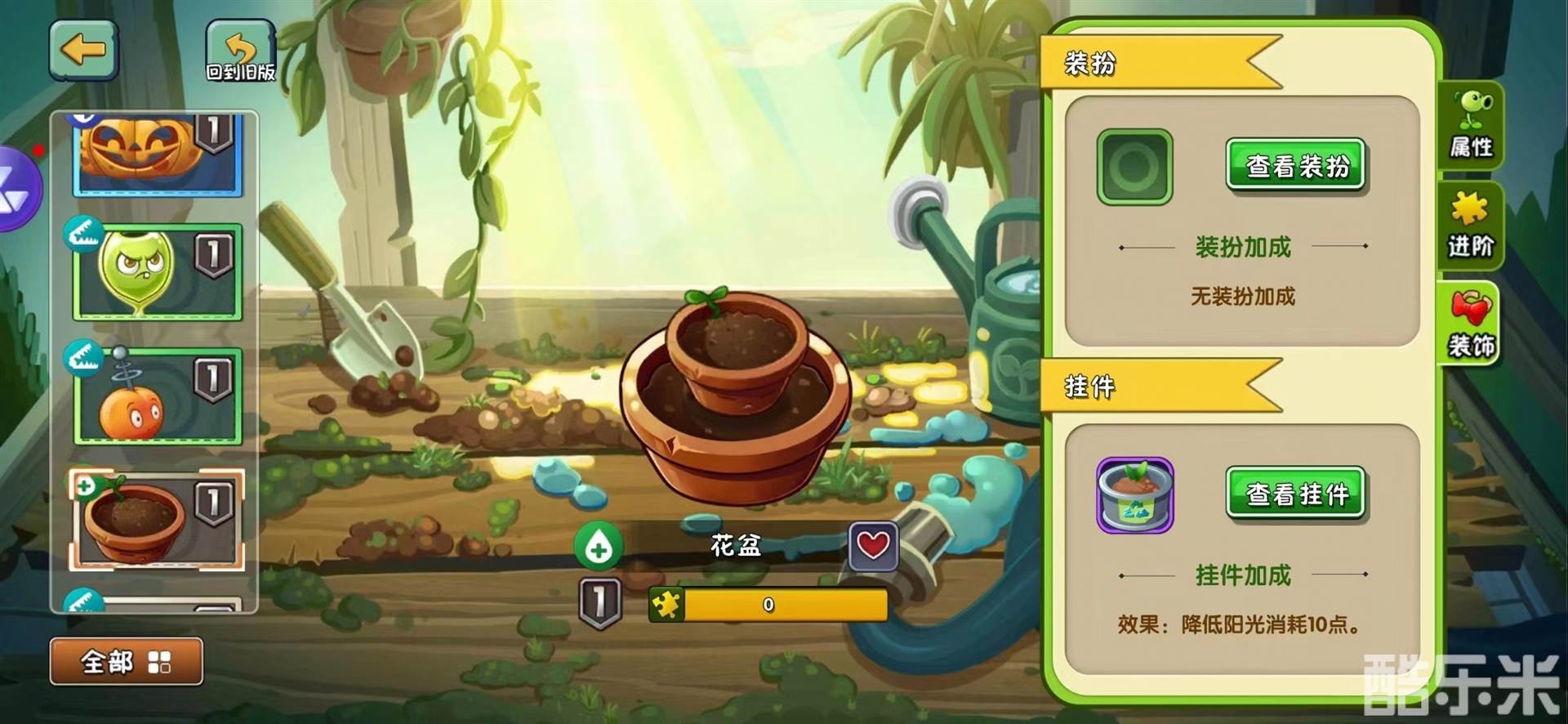 较太阳能花盆降低阳光消耗少,但没有4阶及以上的限制,可以给花盆,莲叶,三叶草等最高阶较低的植物佩戴,也可以配合进化神器,适用于要提供进化的原植物阶数较低,其中给花盆可以稍稍降低回忆限5000阳光的任务压力,其他意义不算大。