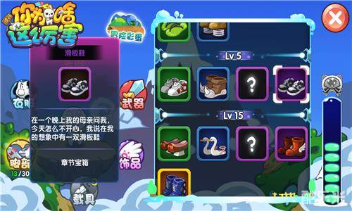 玩家在达到30级之前,基本上处于新手阶段,大家在这个时期会遇到很多脚部道具,游戏为大家做了等级和品质区分。5级以下的鞋子没有什么亮点,在5级-15级的初级鞋中,紫色品质的滑板鞋无疑是最给力的。一步两步似爪牙,似魔鬼的步伐,攻击值41,速度值30,滑板鞋完全可以在新手阶段独当一面。