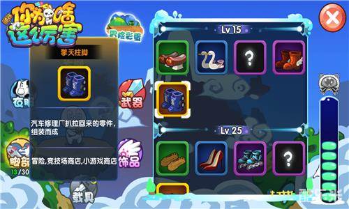 在15级到25级阶段,从汽车修理场扒拉回来的擎天柱脚是最好的鞋子,它也是玩家们可能得到的第一双黄色品质鞋,其105的攻击与74的速度在脚步道具中出类拔萃。清朝的旗鞋是在这个阶段最抢镜的物品,虽然能力值很普通,但因为是格格和贵妃的高跟鞋,所以在游戏中一直颇具人气!