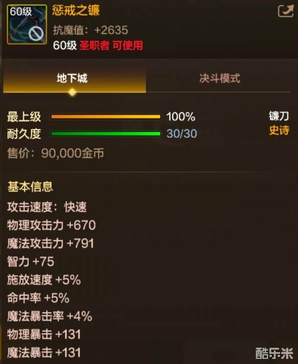 惩戒之镰是DNF手游中的圣职者职业60级史诗镰刀,有着附带冰属性攻击的特效,以及自带高额的冰属性强化。下面和酷乐米小编一起来看看吧