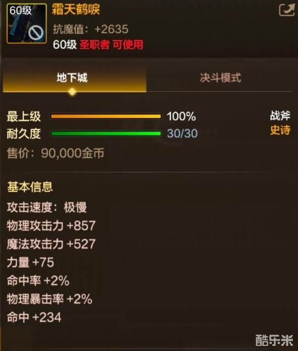 《地下城与勇士》60级史诗战斧霜天鹤唳装备