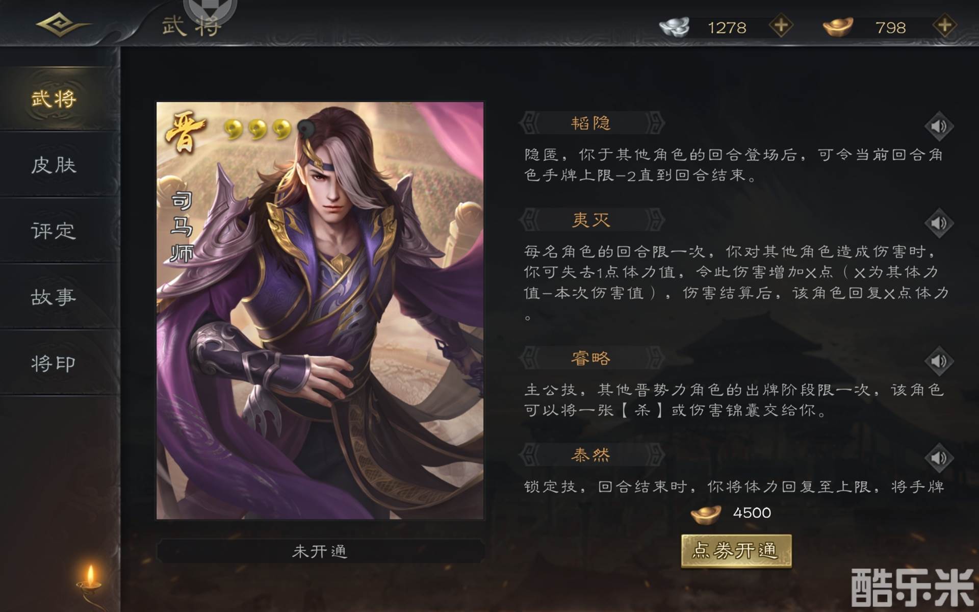 怒焰三国杀司马师技能怎么样?有很多玩家在玩游戏的时候想知道司马师的技能是什么,下面和酷乐米小编一起来看看吧