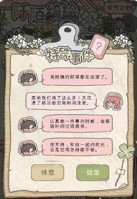 4、再制作食材期间会触发特殊事件,完成该区域全部订单会解锁出行小记。