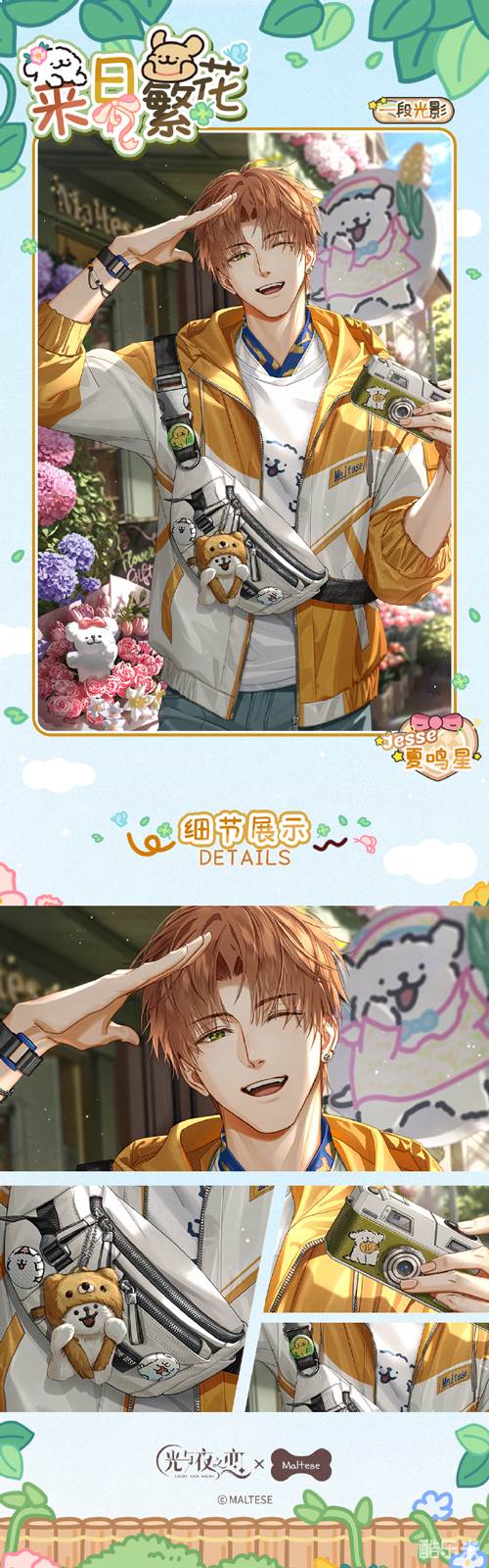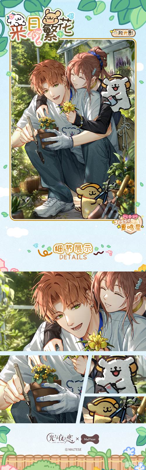 【即刻花信】是光与夜之恋上线的线条小狗联名卡池,开启了夏鸣星的来日繁花卡面活动,在12月20日更新后开启卡池,是一张恋爱感加联名元素满满的卡面,想必大家对一些细节上的描绘还不是太清楚,下面酷乐米小编给大家带来《光与夜之恋》夏鸣星来日繁花灵犀卡面介绍,一起来看看吧。