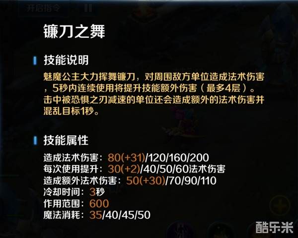 解析:一技能是魅魔公主主要的输出技能,拥有较高的AOE伤害,清兵和刷野能力很强,在触发被动后释放有不错的控制效果。