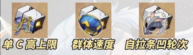 重循苦旅的司铎(单体36%暴伤增益)/骇域漫游的信使(开大全队12%提速1回合)/晨昏交界的翔鹰(开大自拉条25%凹轮次)。