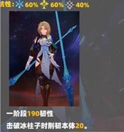 3、具体打法:全程集火可可利亚本体进行输出,不用考虑冰柱子和杰帕德,阵容练度太低则需要考虑破韧杰帕德,上半生存压力较为一般,带加拉赫即可,将砂金和灵砂放在下半。