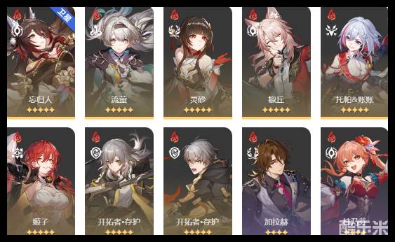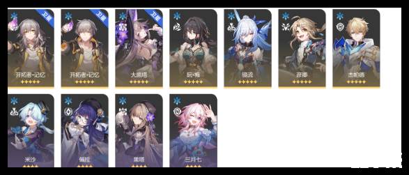 3、景元、星期日、阮梅(知更鸟)、灵砂(符玄、沙金、罗刹)