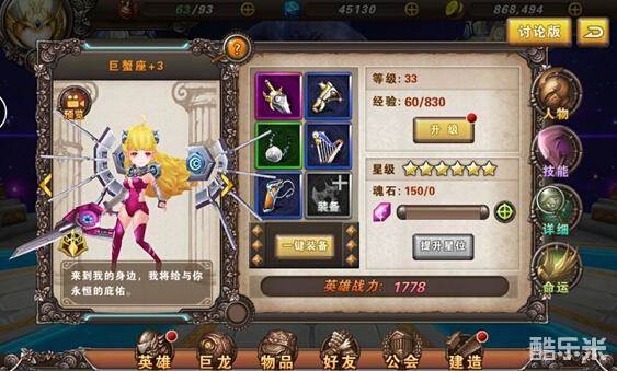 分析:巨蟹座是一位纯输出的物理型英雄,全体三段攻击,后排暴力攻击,以及趁你病要你命无耻选择攻击。巨蟹座可以说是一位花式秀输出的英雄,同时兼具优秀的爆发力,菜刀队需要她!