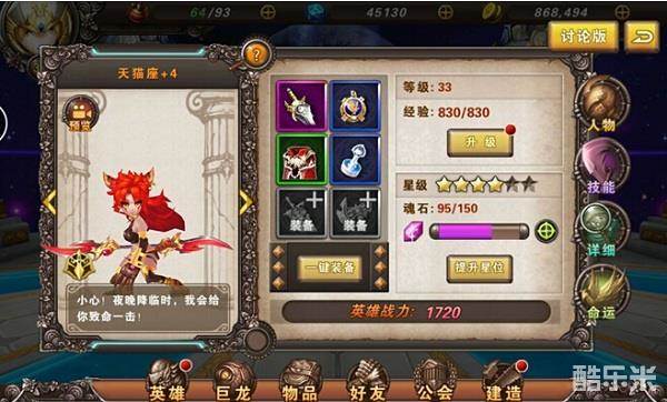 分析:天猫座是一位前排物理输出型英雄,能闪能袭,看准时机后,灵活如猫的天猫能够奇袭到敌人的身前身后,手刃敌人,她的闪避比其他英雄的高,所以也是个不错的闪避盾。