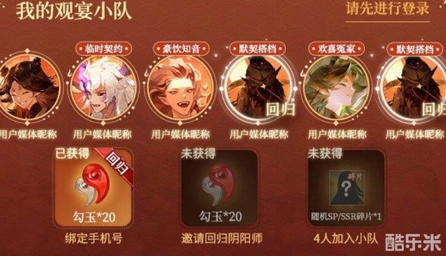 寻找你的阴阳师默契搭子,结伴赴约大江山宴会,领取随机SP/SSR碎片和御行达摩(碎片)等奖励!
