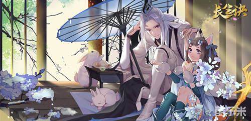 在《长生诀》全新主视觉原画中,小萝莉身着“狐言”时装,一边吃包子一边伸手去接掉落的花瓣,毛茸茸的耳朵俏皮可爱。而一旁的昆仑师父一手撑伞,一手伸到她头上,似乎在为她挡落花,又似乎是想摸摸她的头。胖乎乎的小兔子或卧或立,窗外梅枝悄然伸出,整个画面温馨有爱。