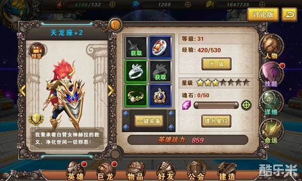 天龙座是各位的第一个肉盾伙伴,他的生命和防御都还不错,并且拥有不俗的输出,也有一定的控制技能,是前期非常实用的前排;到了后期,天龙座的防御劣势会显现出来,因此,后期各位龙骑士还是要将其替换一个强力的肉盾,如:天兔座、金牛座,或者将其作为输出型前排进行培养。