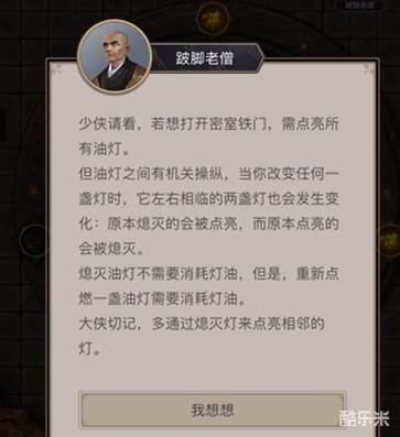 1、由与老僧的对话得知,想要进入地宫那么就得消耗灯油。