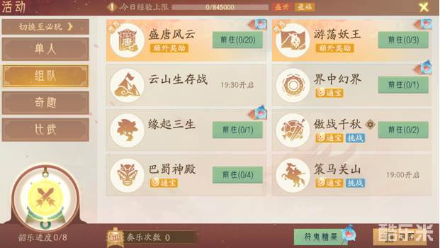 达到50级的少侠可在“活动”界面选择“组队”,找到“云山生存战”玩法入口,点击前往即可自动寻路至活动接引NPC处。