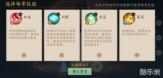 3.除选择职业外,玩家还需要额外选择场景技能,场景技能可以助力玩家快速提升实力。