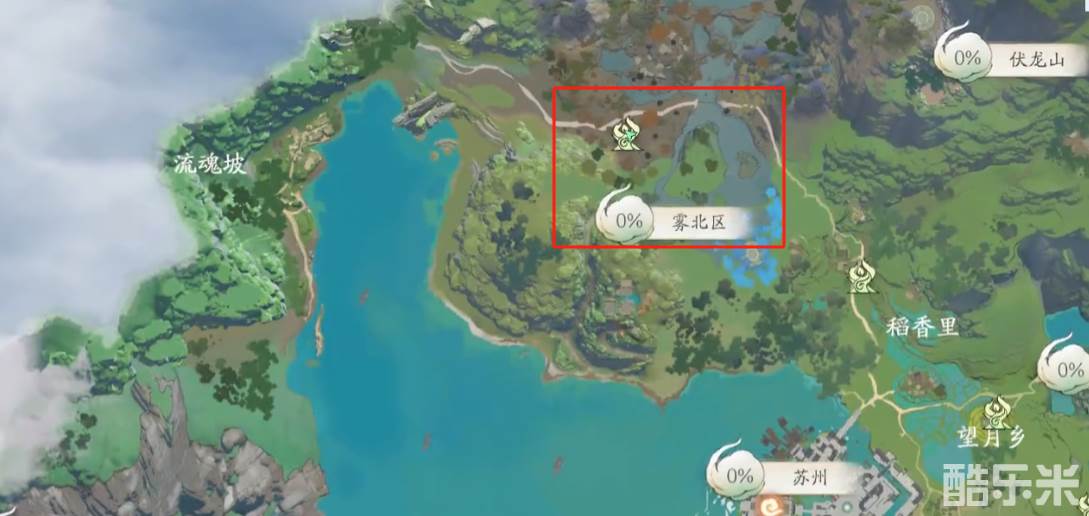 首先大家可以先打开大地图,就是找到左上角的雾北区。点一下就可以找到龙眠郊村,如果还没有解锁的话,需要先步行到这个地方开启传送。接着我们可以直接传送到这里,就能来到村子周边,不过也要注意网速,太差的话可能会卡住。