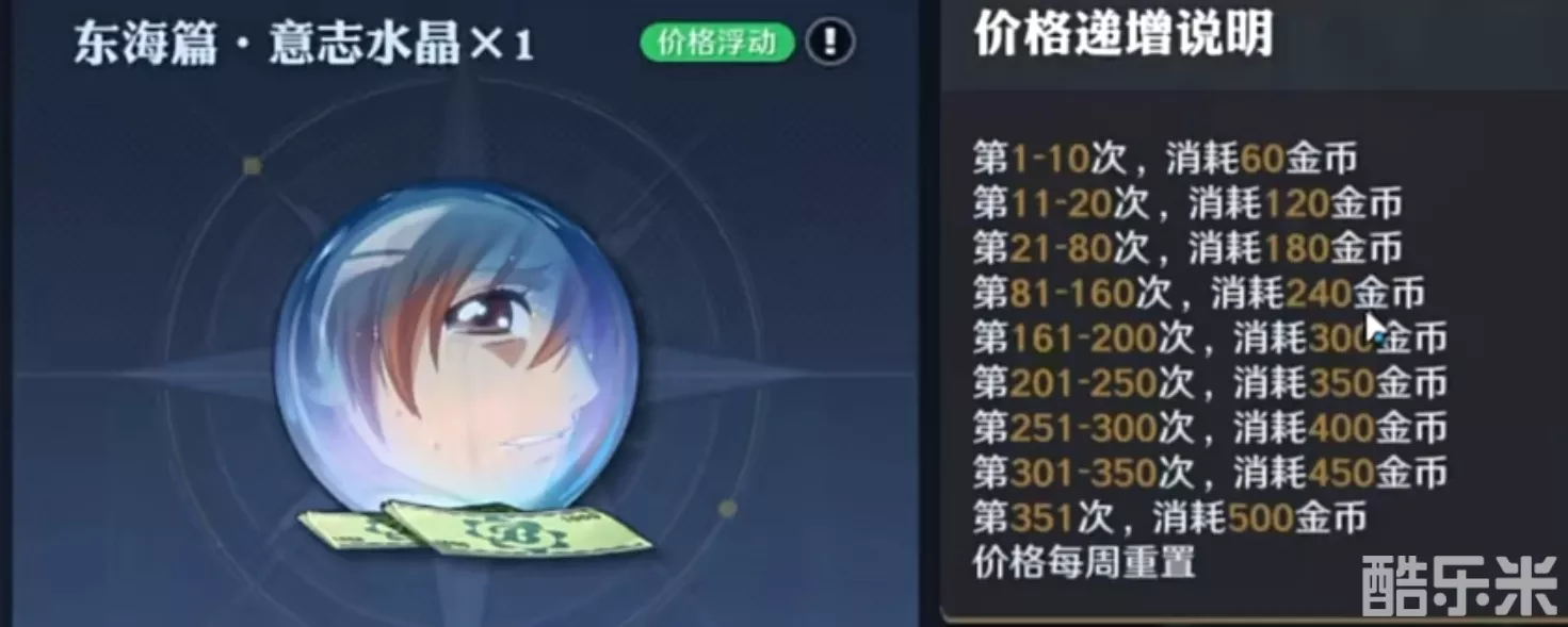 4、意志:意志是目前阶段给战力最多的,每星期的前10抽只要60金币一抽,建议都拉满,11-20抽价格翻倍,120金币一抽,小氪可考虑,再往后相对花费较大,平民玩家就不考虑了。