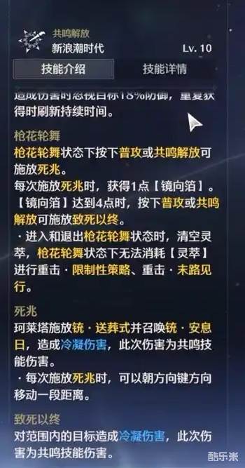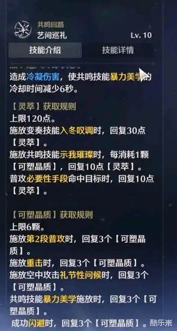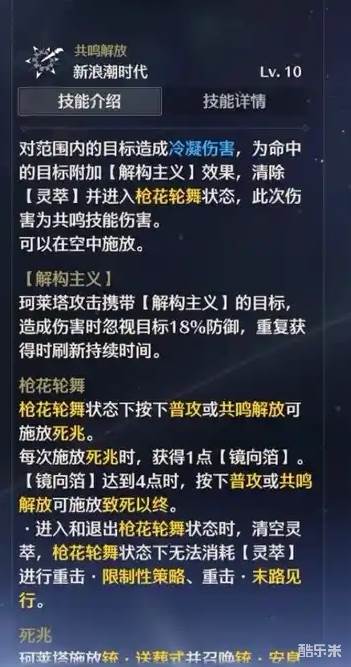 鸣潮珂莱塔是一位五星冷凝属性的角色,技能能够对敌人造成高额的冷凝伤害,由于部分小伙伴对她的技能详情还不太了解,接下来酷乐米小编给大家带来了详细的《鸣潮》珂莱塔技能介绍,希望这篇文章可以帮到大家,大家一起来看看吧!