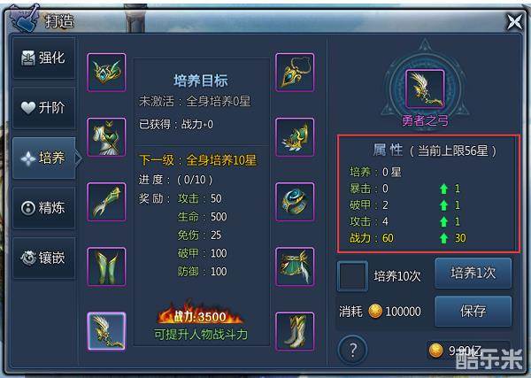 玩家等级达到40级就可以对装备进行培养,点击“培养”即可进入培养界面,对于自己重要的伙伴,要好好培养才行。