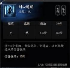 另外剑心通明作为关键的机制技能也是不可或缺的,每1分钟都要第一时间开启。