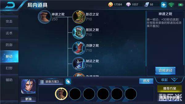 橘右京的玩法主要以上单为主,故前期出门装备神速之靴,可大幅度提高橘右京的移动速度,借此提高生存能力。且橘右京选择上单路线时,对线敌人多为射手与辅助的阵容,当敌军射手拥有红buff时,一旦受到攻击,巨大的减速效果会使橘右京难逃敌军的围攻,不慎送出一血,但若购买神速之靴,则即使橘右京遭到减速,也不至于移动速度变得非常慢,进而提高生存能力,进一步稳住上路的情况,不给敌军射手可乘之机,保证自己的安全发育环境。