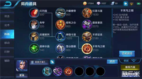 抵抗之靴、暗影战斧、不死鸟之眼、反伤刺甲、名刀·司命、不祥征兆/贤者的庇护