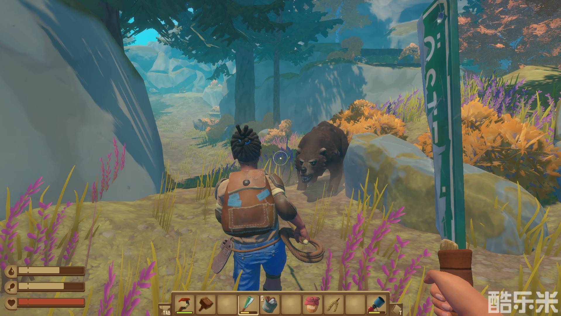 生存挑战: 玩家需要管理资源,确保食物和水供应,同时对抗饥饿和口渴。