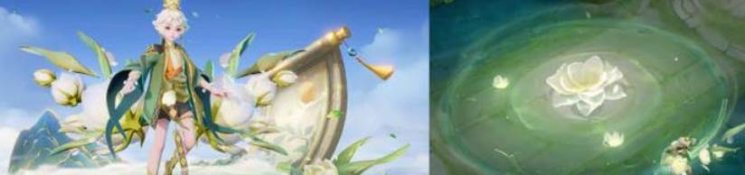 服饰上这款皮肤是以茉莉花为主题进行设计,不管是茉莉花苞般的发髻、腕间佩戴芬芳盈袖的茉莉手串还是背后是茉莉花朵错落排布而成的轻盈翅膀,无一都让这款皮肤显得“茶风古韵”,虽然皮肤整体的给人的观感比较普通,但是这样的设计也算也别有一番韵味