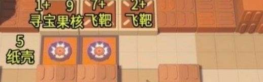 5、在顶部放置一个飞靶布,最后将寻宝布卖掉后在图中两个位置放置果核布。