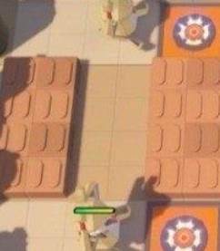 1、进入挑战后先往上方第一个位置摆放寻宝布并升级,然后往第三个位置摆放飞靶布(升级)。
