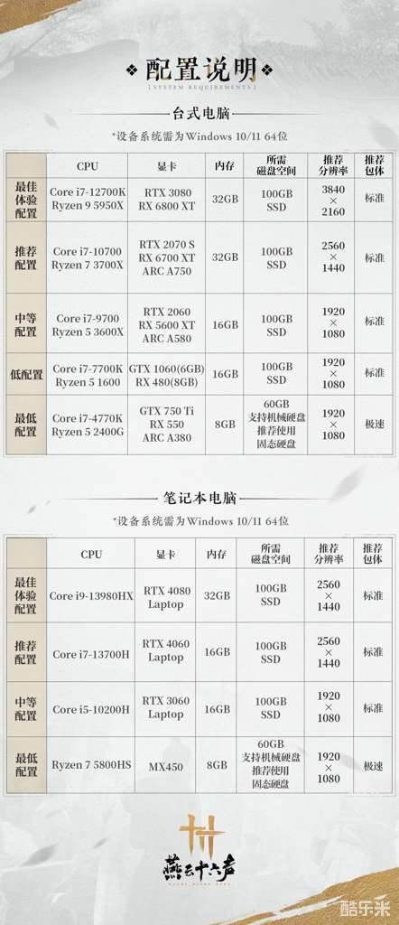 游戏官方推荐公测版PC的具体配置要求: