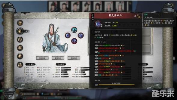 2、技能搭配:水力四射、武技入门、兵刃专精、武技进阶和武技精通。