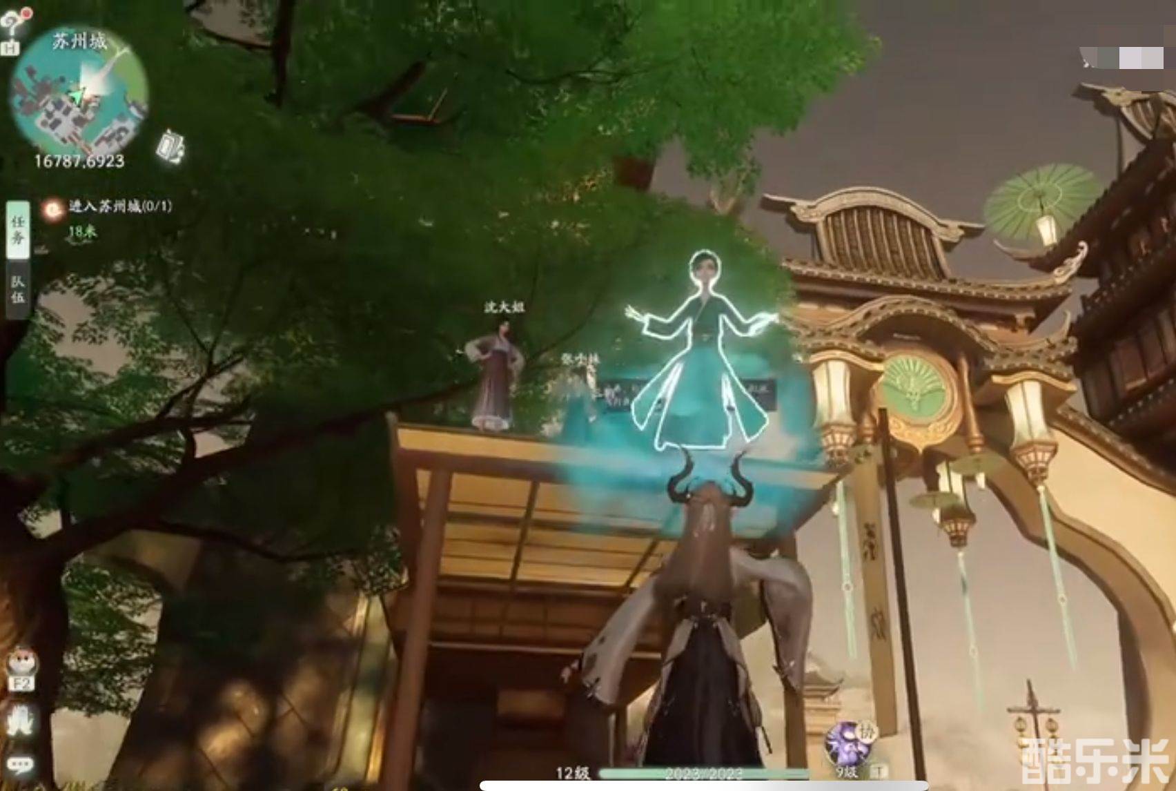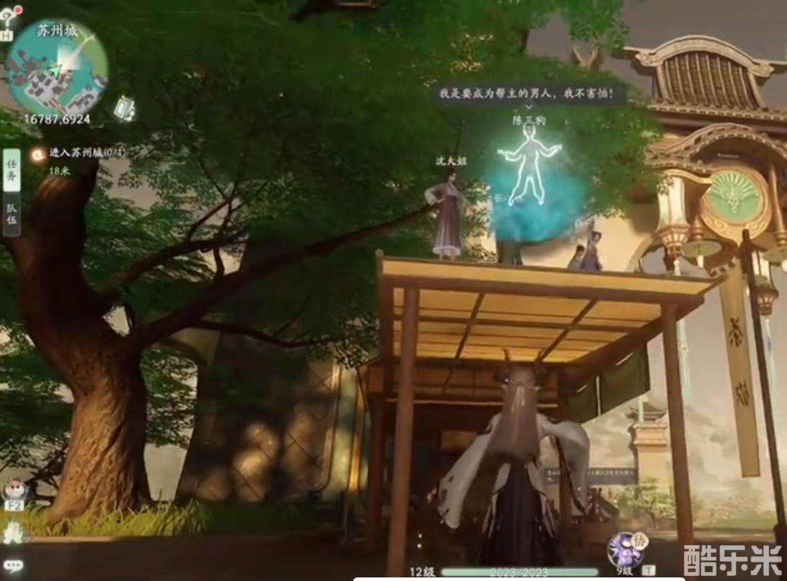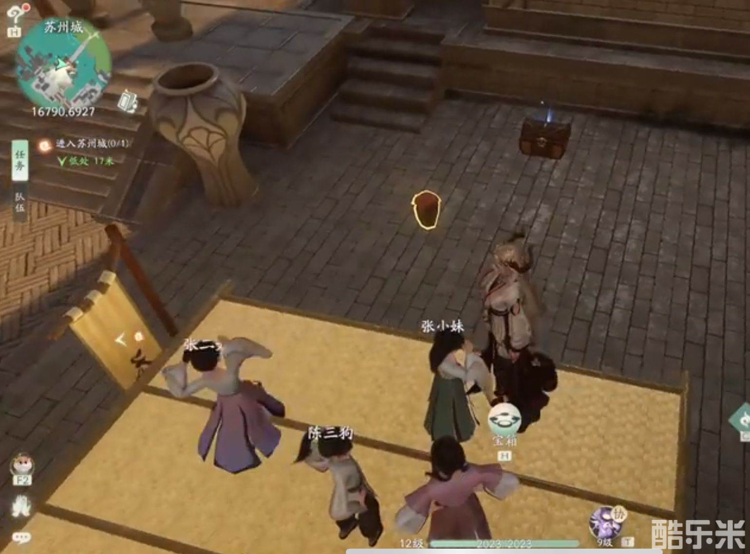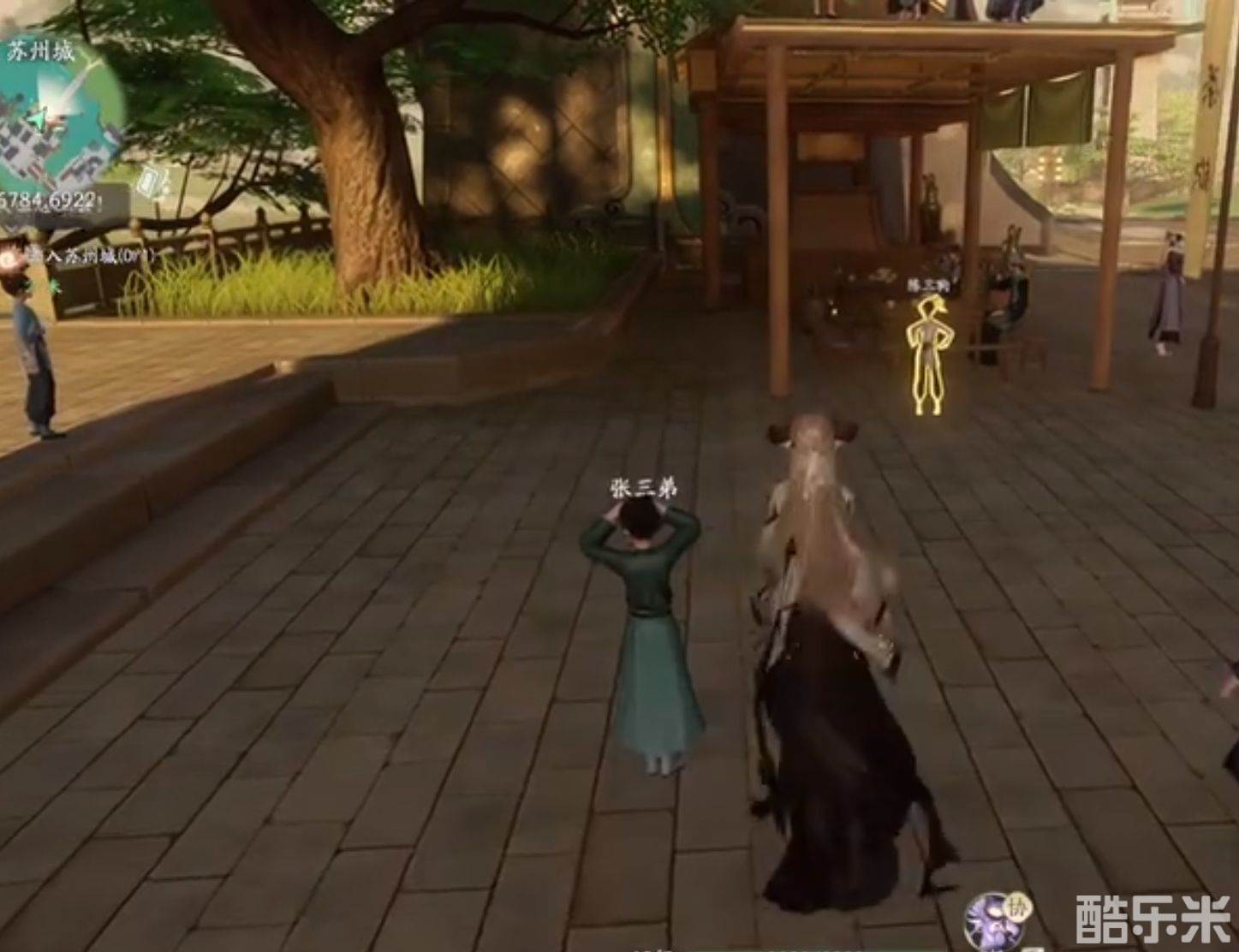 先是去到苏州城,小朋友这个属于支线任务,主线任务的中途需要去帮这么给忙,拱形大门旁有个房屋的小平台,下面就是几根柱子撑着的,上面已经有几个小孩子了,我们需要把下面的小孩全部送到屋顶上去,NPC陈三*这个小孩正常我们走到他旁边用御物的方式把他托举起来超过我们头顶,视角往上抬,左右和上下移动一下,是可以找到空位把他放上去的。
