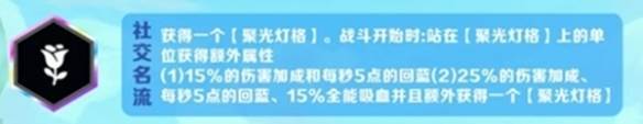 4、社交名流:可为弈子提供聚光灯格,使其获得额外属性,如伤害加成、回蓝、全能吸血等,能有效提升该弈子的输出和生存能力,让其在战斗中发挥更重要的作用。