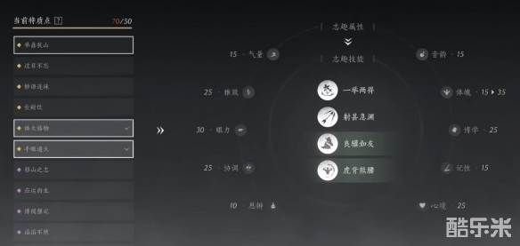 1、选择不同的特职会加不同的志趣属性,开局只能选最多50点特质点;
