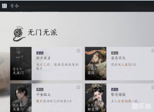 燕云十六声门派号令任务根据门派的不同,接取位置也不一样。玩家加入门派后即可参与活动,这些任务与门派的特色及背景紧密相连,完成将获得丰厚的奖励。接下来酷乐米小编给大家带来了详细的《燕云十六声》门派号令任务接取攻略!