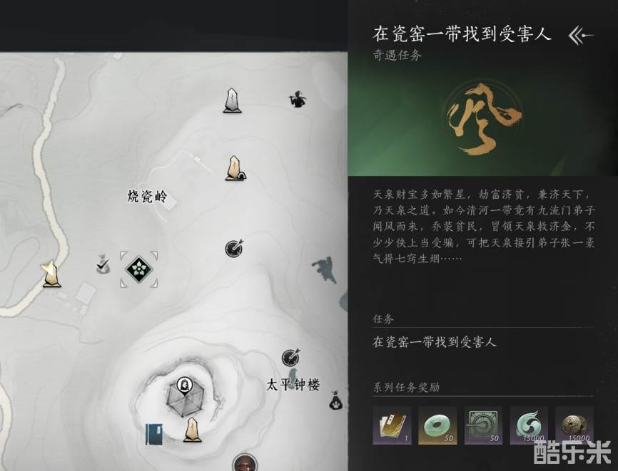 然后就按照任务指引做任务就行了,前往瓷窑东方向找成实,然后分别去三个地方找受害人。