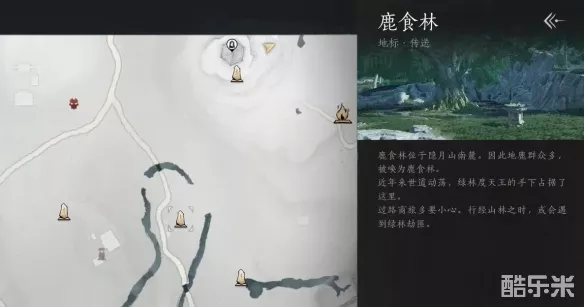 1、先传送到清河隐月山食鹿林的传送点这里。
