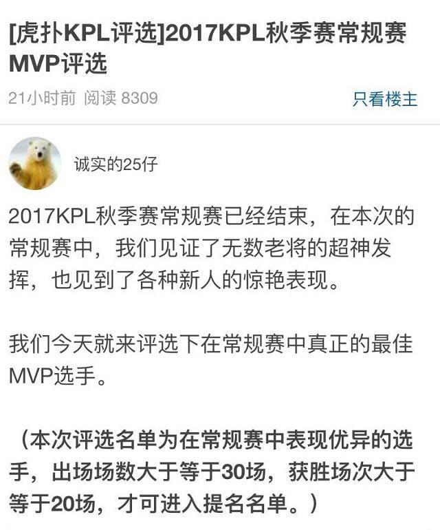 近日某论坛针对本届KPL常规赛发起最佳MVP评选活动,第一名老阳以592票远超第二名刺痛463票。