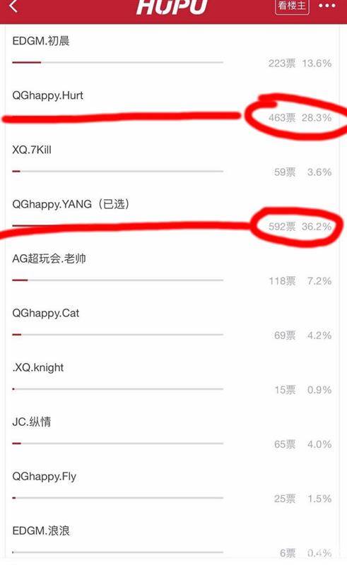 再细细观察目前投票结果,发现榜首之争居然是QGhappy内战,大多数粉丝内心也在刺痛与老阳之间徘徊,纵情初晨的惊艳表现大家也是看在眼里的,为什么人气最高的是老阳和刺痛,粉丝的解释是:刺痛和老阳也是互相成就的或者说全队都是互相成就。