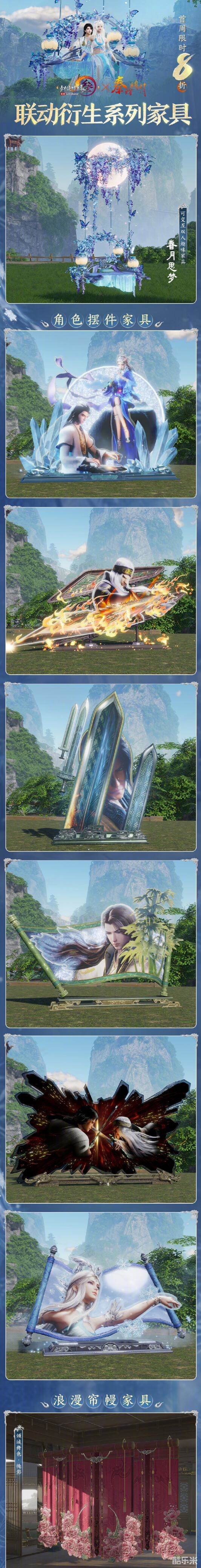 《剑网3》秦时明月联动家园系列家具外观一览: