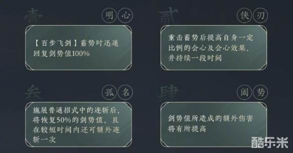 1、明心:【百步飞剑】蓄势时迅速回复剑势值100%