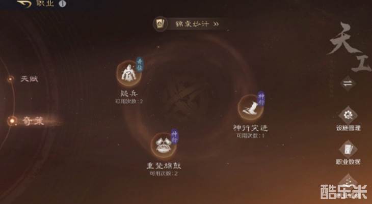 如果你觉得“锦囊妙计”已经够有趣,那“奇策”玩法一定会让你眼前一亮!这项新功能和“锦囊妙计”紧密相连,直接为职业玩法带来了质的飞跃。在“锦囊妙计”中,你将会抽到不同职业的专属卡牌,这些卡牌会让你体验到其他职业的技能。例如,镇军职业原本只能进行防守,但通过奇策,你可能获得“青囊”的治疗技能,或者是“神行”的隐身技能。通过奇策的加持,不同职业的玩法将不再局限于单一的技能树,你可以根据战况随时调整策略,使自己的职业特色更加多变,战术也更丰富。