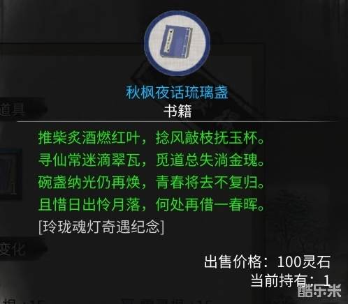 1.选项一:一段剧情后获得秋枫夜话琉璃盏并结束奇遇