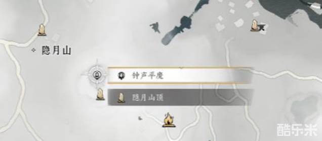 先是来到“隐月山”附近,如图所示的传送点“隐月山顶”,来到这里后在寺庙的门口可以遇到敲钟老人,与之对话了解到黄钟碎片在一个广纳五音的好乐之人手中,从那人那里获得黄钟碎片就能修复黄钟,重现太平之音。