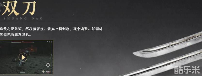 双刀作为近战类的攻击速度非常快速,拥有能快速发动连续攻击的特点,能在扣除自身部分血量后,轻松对敌形成大额的输出量,只要能运用得当,就能用其在战场上面扭转乾坤,它的武学一是将手中的刀架起后,向着前方来一段长距离的冲刺,遭受这个攻击敌人会受多段伤害;