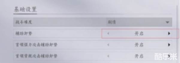 3、接着在【基础设置】里找到【辅助卸势】选项。将其开启即可。