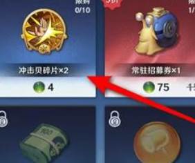 2、在海域冒险商店内,找到冲击贝的碎片,花费绿珍珠进行兑换;